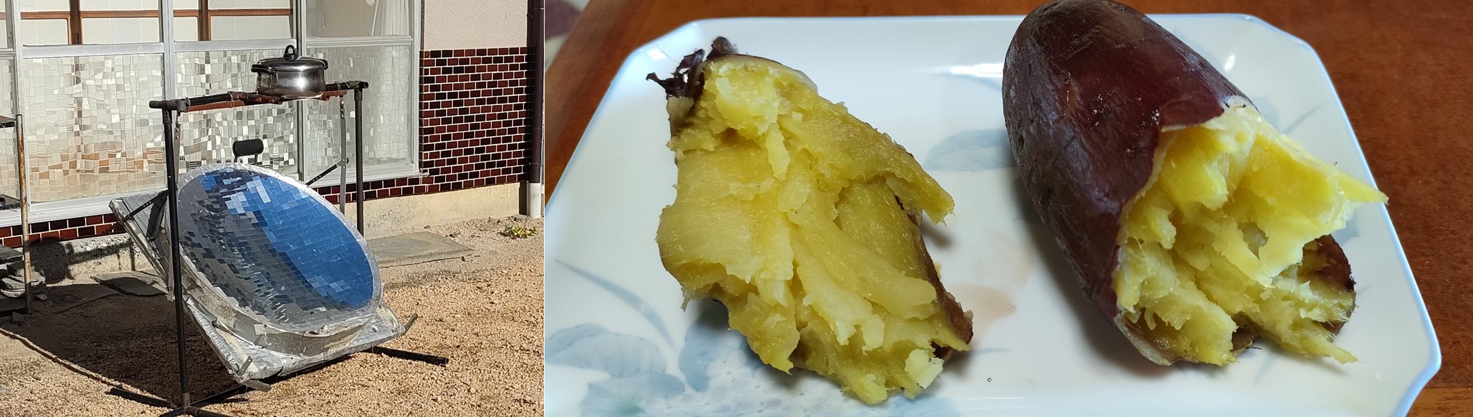 太陽光で3時間、焼き芋つくりました。