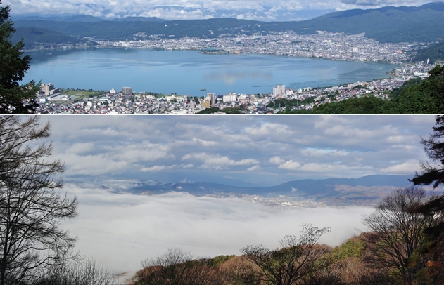 諏訪湖をおおった雲海の様子です。